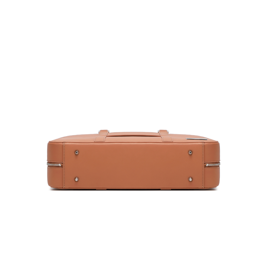 The main compartment opens smoothly to reveal a well-organized interior, built to accommodate a laptop, documents, and daily work essentials without bulk. Reinforced handles, polished metal hardware, and precise stitching complete the bag’s refined finish.